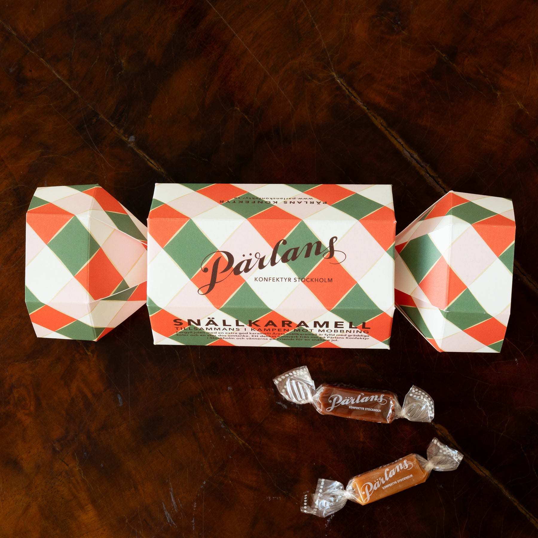 I år är vår smällkaramell särskilt god. Förutom gräddiga kolor i smakerna SALT KARAMELL och CHOKLAD, så är den också fylld med snälla handlingar som kan göra stor skillnad. För varje såld produkt skänker vi oavkortat 10kr till våra vänner på Friends och kampen mot mobbning. Pryd hem och hus med vår SNÄLLKARAMELL och låt det bli början på en snällare värld.