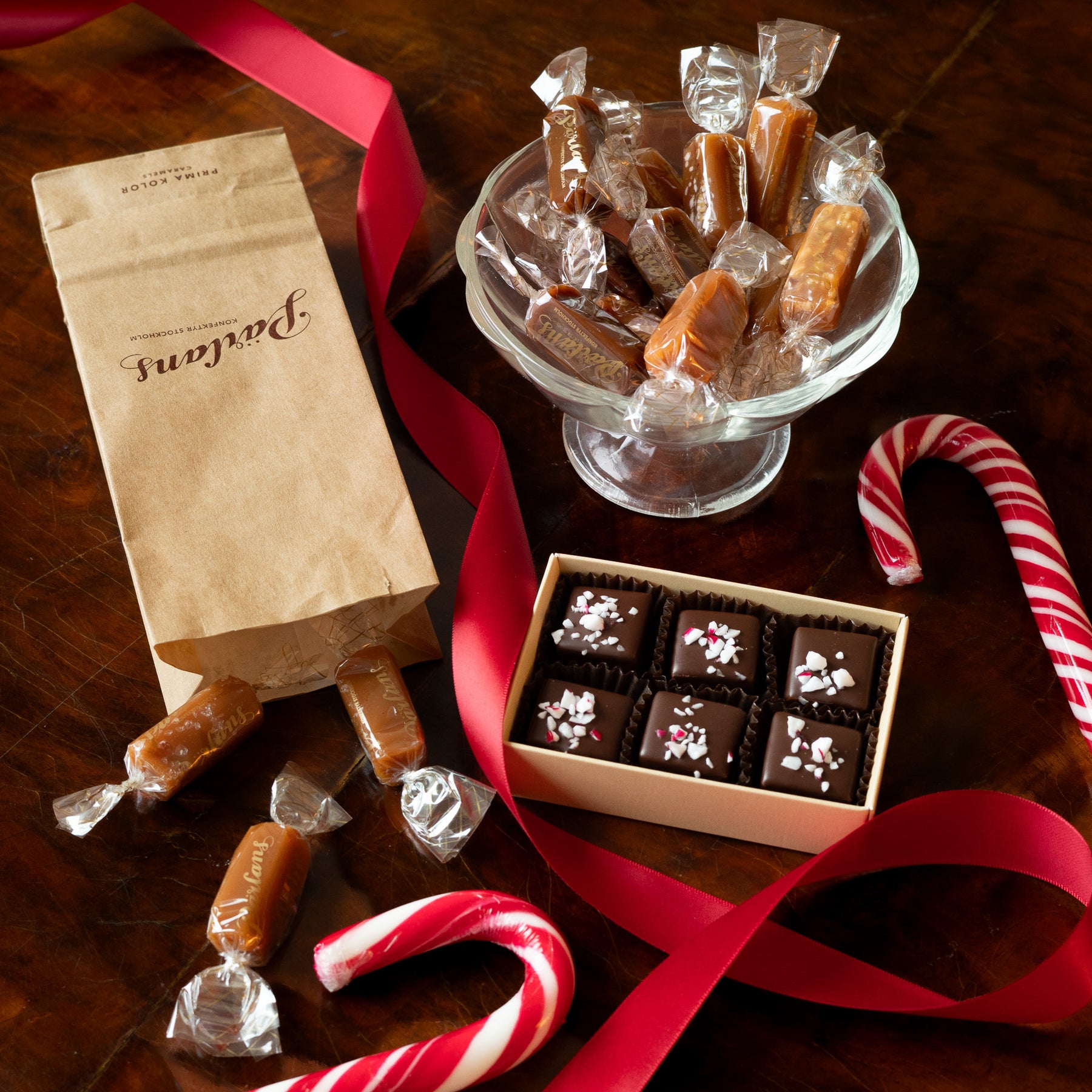 INGREDIENSER Socker, grädde, glykossirap, smör, choklad (kakaomassa, socker, kakaosmör), citronsaft, kakaobönor, havssalt, lakritspulver, salmiaksalt, citronessence, bourbonvanilj), saffran, mandel, oljor (citron, pepparmint och färgämne karmin. Alla kolor kan innehålla spår av nötter. Hållbarhet 10 veckor. 15/25 kolor (150/250g).